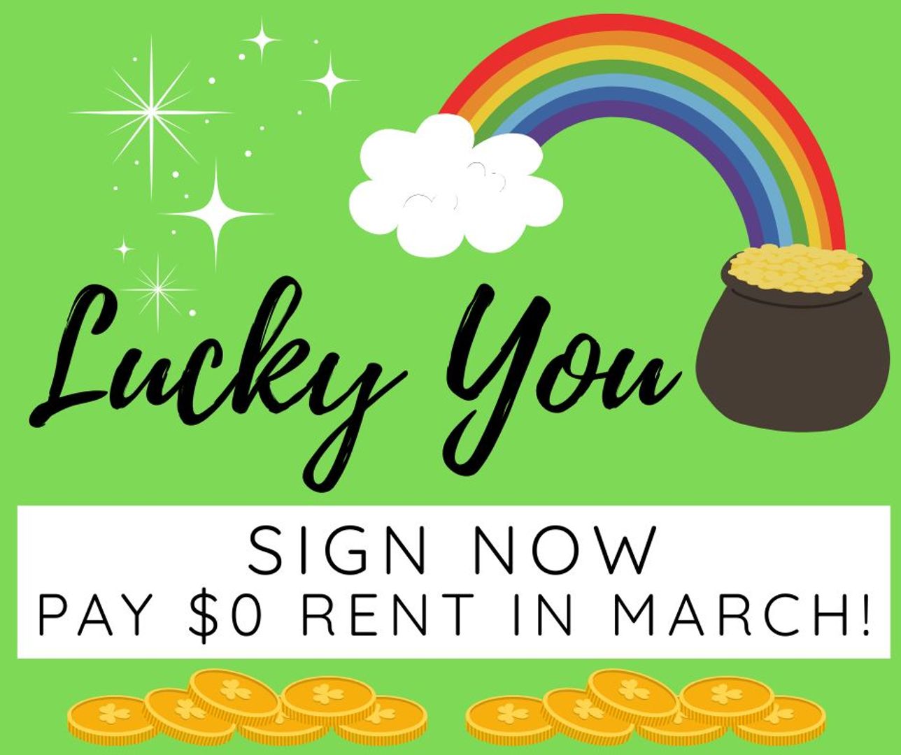 Lucky timing! Sign now and March rent is FREE