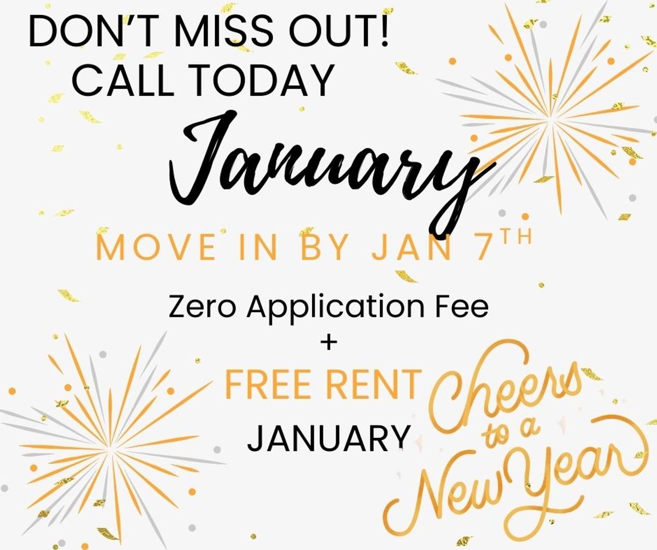 HOLIDAY SPECIAL 1/2 off December Rent and Zero Application Fee!!